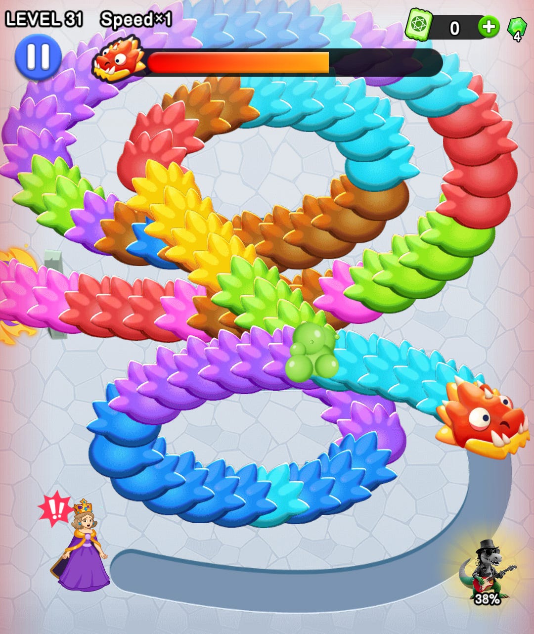 Hoje em dia, para me <<<<desconectar>>>> das redes sociais, me joguei no abismo dos jogos gratuitos para celular. Calma, nada de Tigrinho. Não gasto um tostão para ter mais benefícios dentro do jogo, no máximo assisto a publis de outros jogos para ganhar esses mesmos benefícios. Girl Rescue me enredou numa nova, porém similar aventura. Minha missão é salvar a princesa encurralada num labirinto. O réptil é um dragão, seu corpo também se movimenta sem parar, mas agora ele é composto de bolotas coloridas, de cores variadas. Em vez de alimentar o bicho para fazê-lo crescer, preciso matá-lo aos poucos, eliminar uma a uma as bolotas coloridas para que seu tamanho se reduza gradativamente, e as chamas que escapam de sua boca não cheguem na princesa encurralada que arfa em ansiedade.